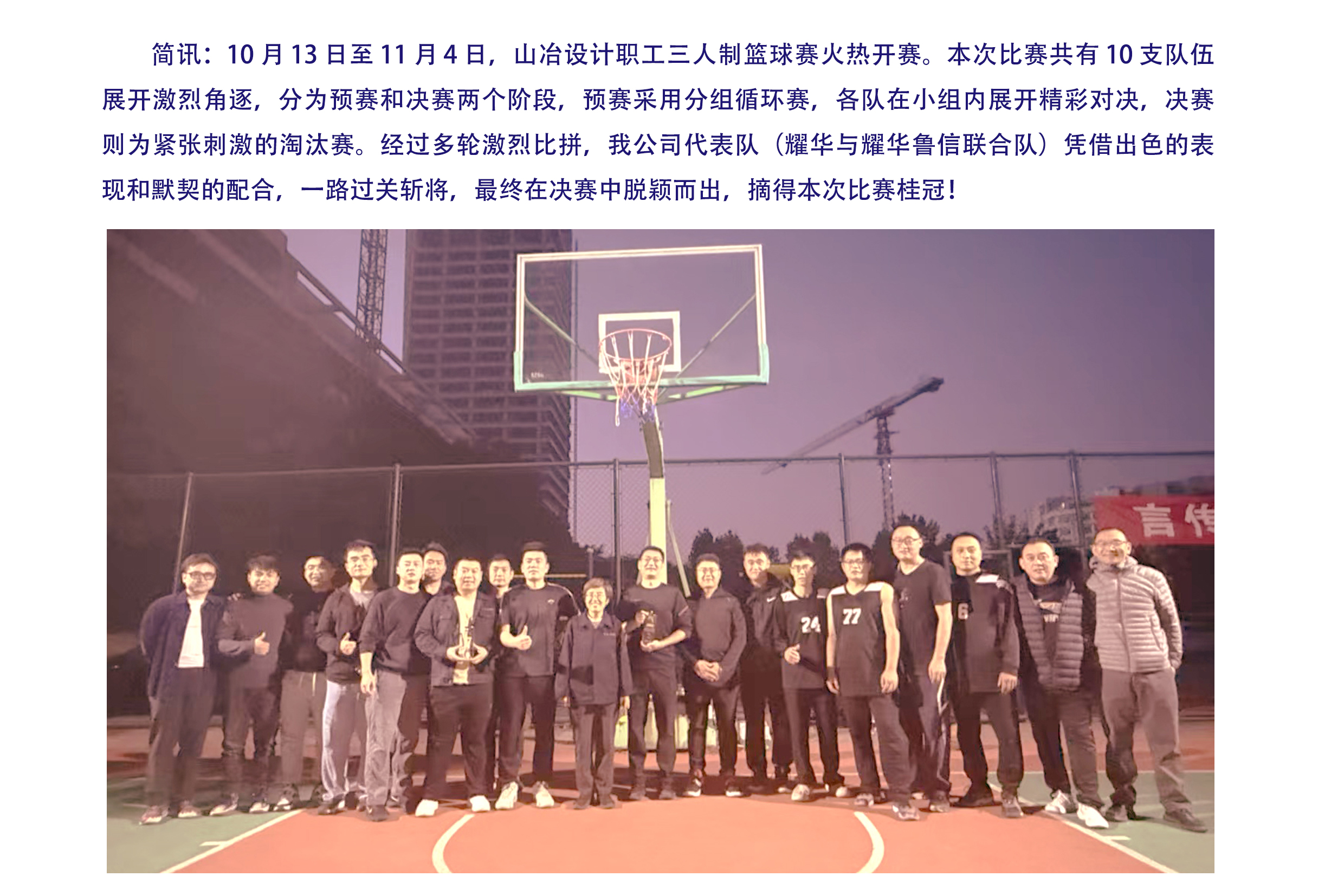 2025年10月,我公司摘得山冶设计职工三人制篮球赛桂冠