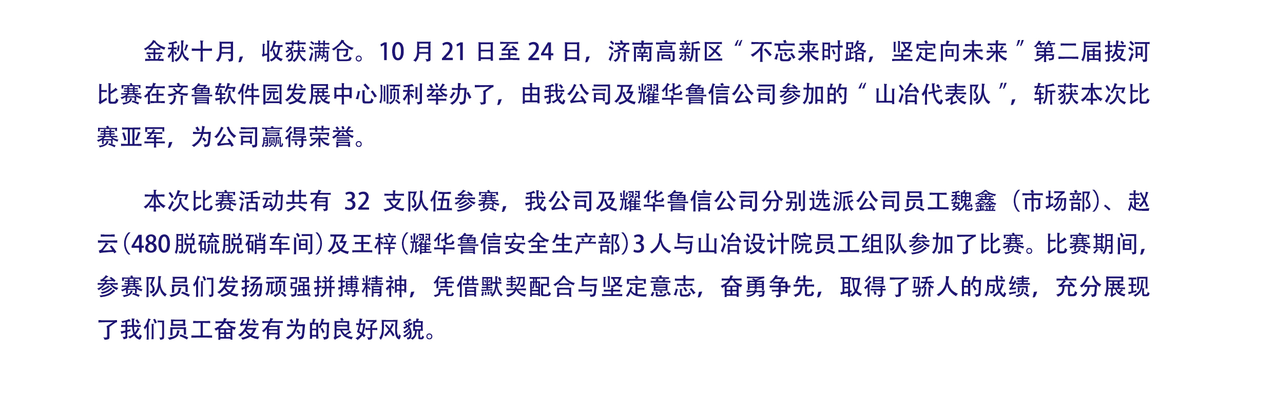 2025年10月,我公司参加的“山冶队”勇夺济南高新区拔河比赛亚军