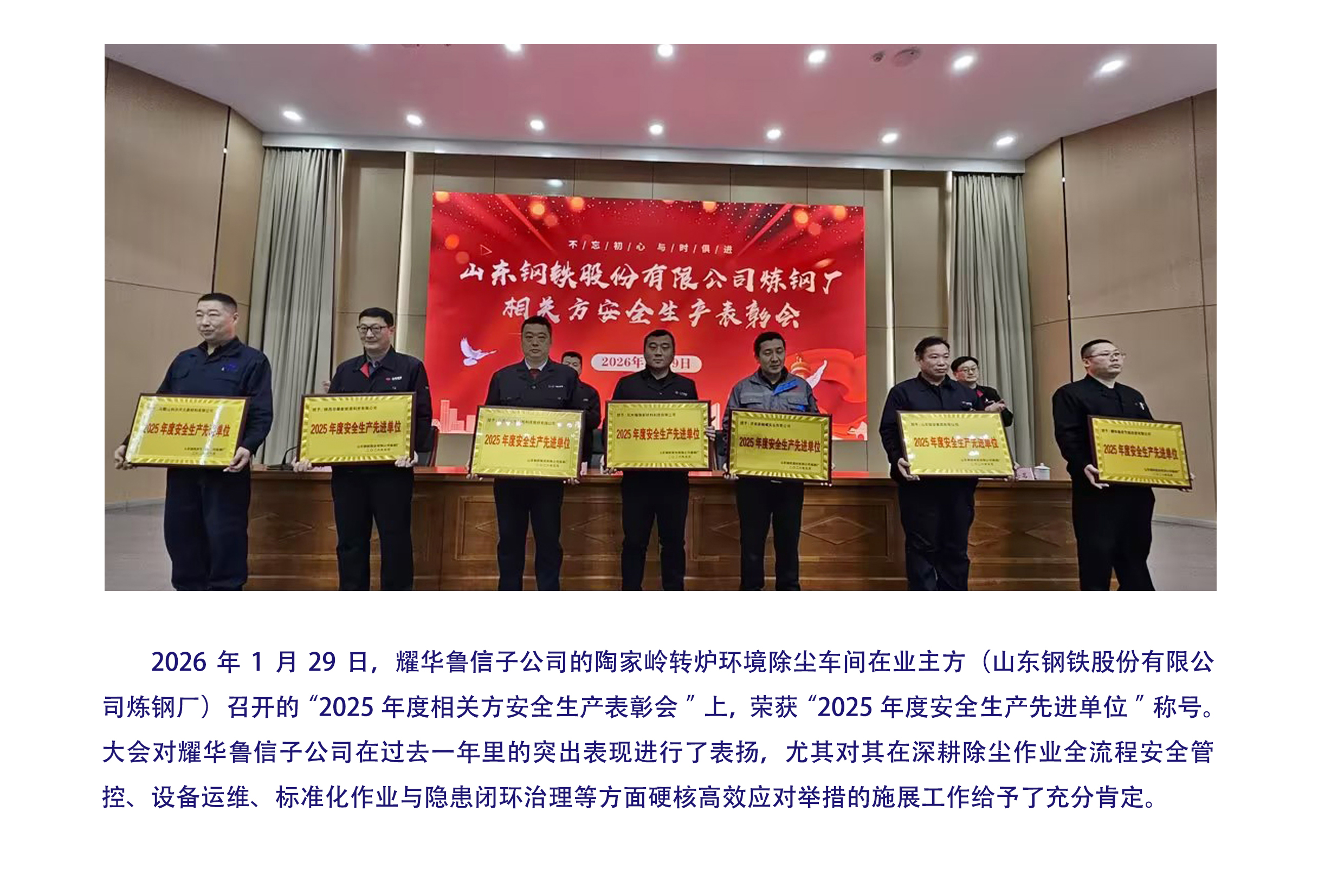 2026年1月29日,陶家岭转炉除尘车间荣获业主方安全生产表彰