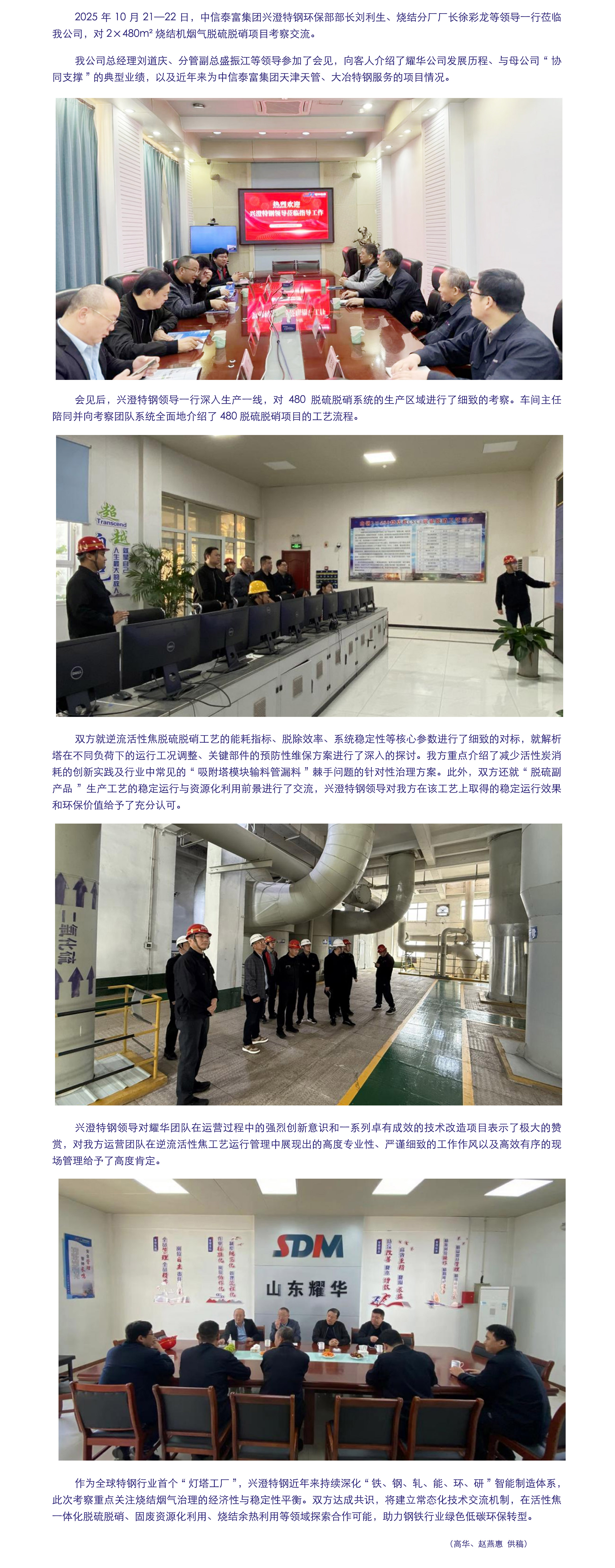 2025年10月21日,中信泰富集团兴澄特钢客人莅临我公司2×480脱硫脱硝项目考察交流