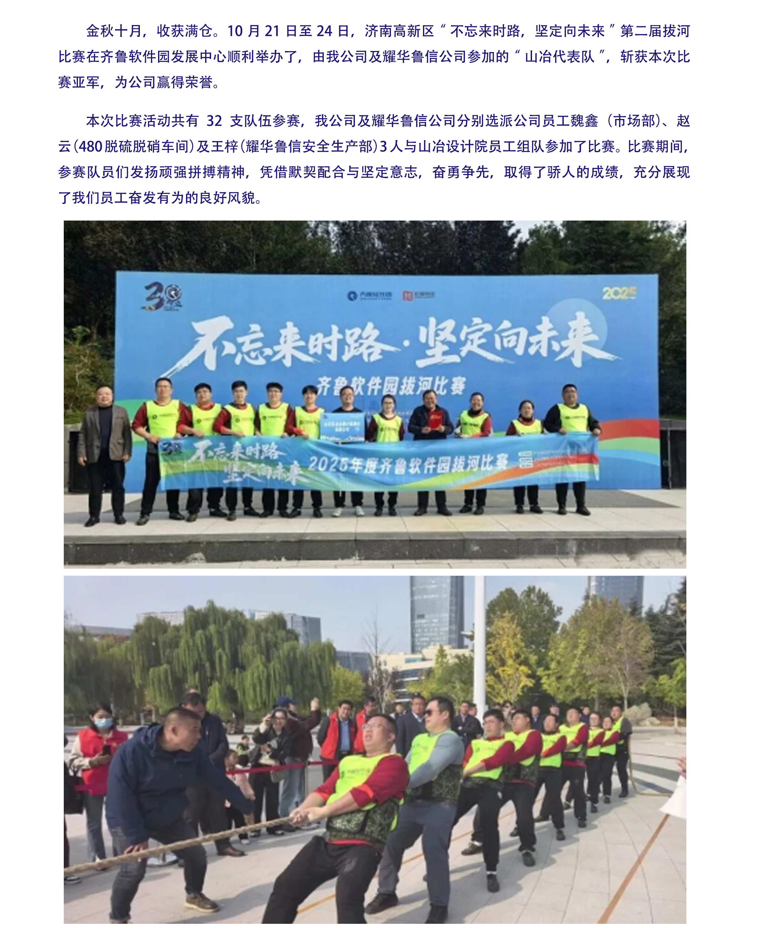 2025年10月,我公司参加的“山冶队”勇夺济南高新区拔河比赛亚军