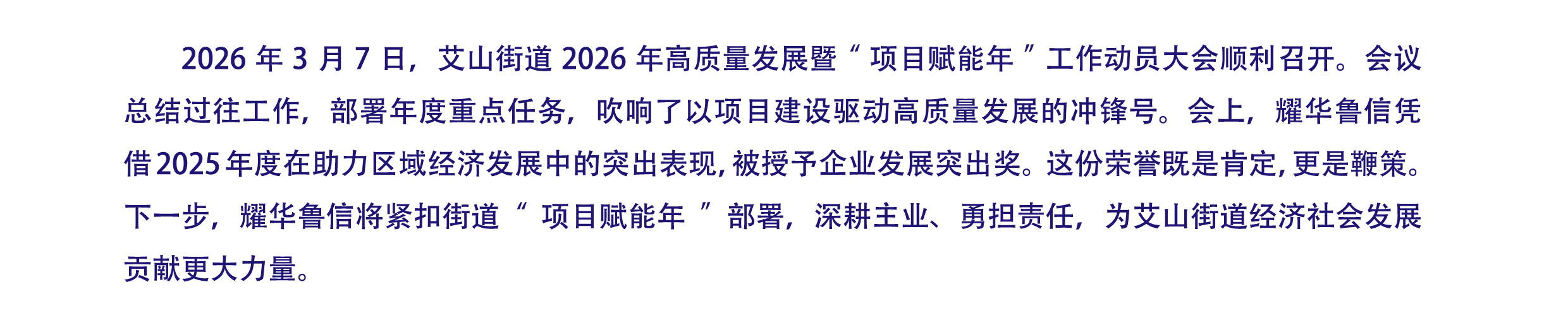 2026年3月7日,耀华鲁信荣获艾山街道企业发展突出奖
